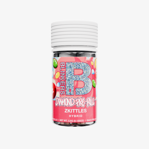 Zkittles is a gang of fun with an icy diamond exterior. Get wrecked by a sweet, tropical blend of fruit flavors with these Indica prerolls. With seven 0.5G pre-rolls per jar, each packed with exotic flower, and rolled in THC diamonds, Zkittles wants you to taste the rainbow, we know you’re down!